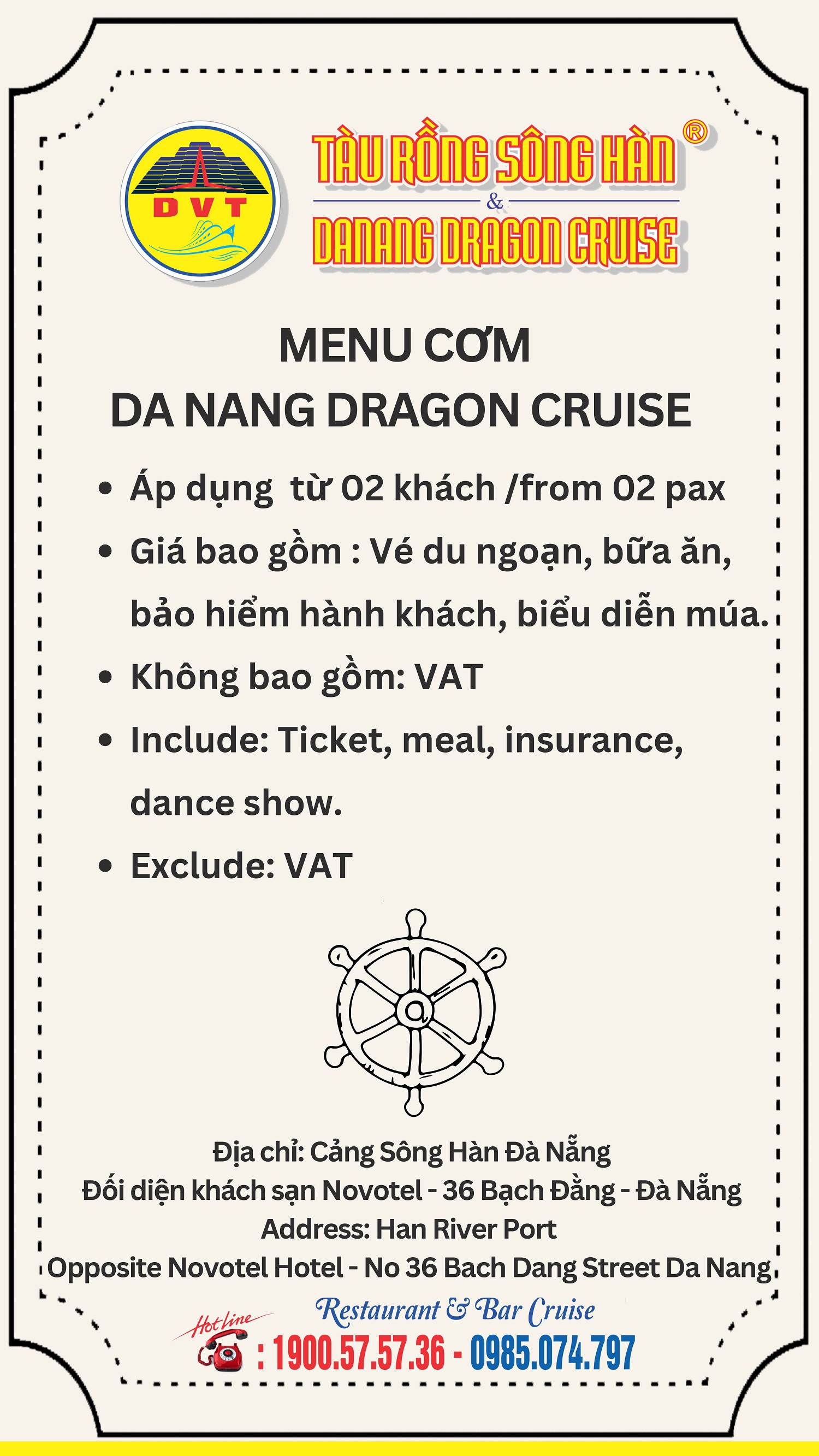 Nhằm tạo điều kiện thuận lợi cho du khách khi đến thăm quan Đà Nẵng & đặt tour du thuyền du ngoạn trên sông Hàn, Tàu Rồng Sông Hàn có tiếp nhận hình thức đặt vé trực tuyến: