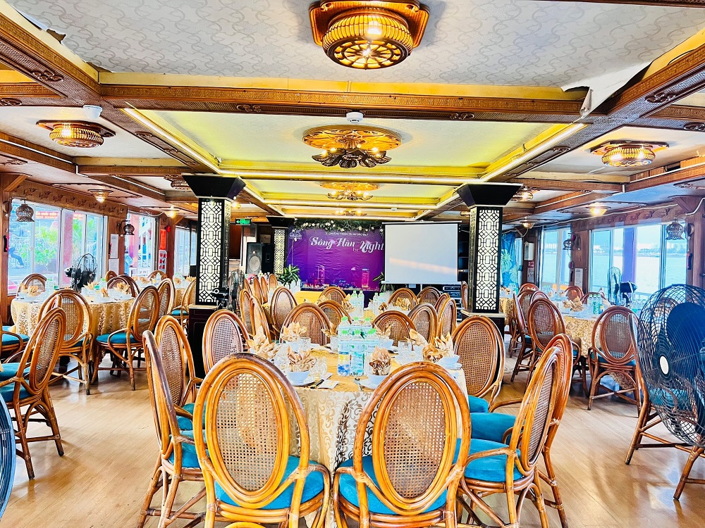 TÀU RỒNG SÔNG HÀN được thiết kế chuyên biệt với kiến trúc 02 nhà hàng, 01 Bar- Café tầng thượng cùng các hạng mục phụ trợ đầy đủ cho một nhà hàng 250 khách. Nội thất nhà hàng được thiết kế với kiến trúc song mây mỹ nghệ sang trọng. Hai sảnh nhà hàng tầng 1 và tầng 2 được bố trí đầy đủ hệ thống sân khấu, âm thanh, ánh sáng hiện đại, dàn Karaoke online phục vụ cùng lúc nhiều tiệc, hội nghị.